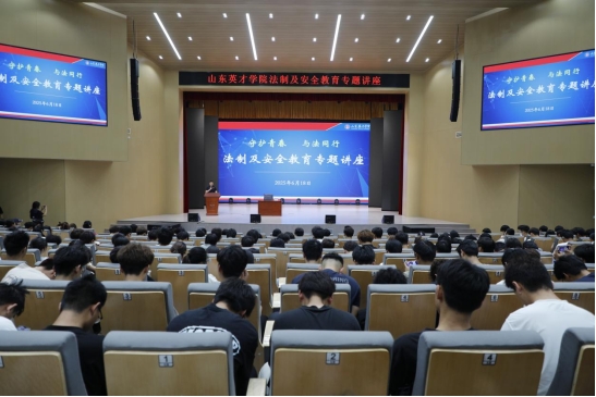 为提升学生的法律意识和自我保护能力,营造知法、守法、用法的良好校园氛围,2025年6月18日,山东英才学院邀请济南高新公安分局巨野河派出所民警、学校法制辅导员李胜丰警官开展“守护青春,与法同行——法制与安全教育专题讲座”,500余名学生参加,本次讲座由安全管理处朱良增处长主持。