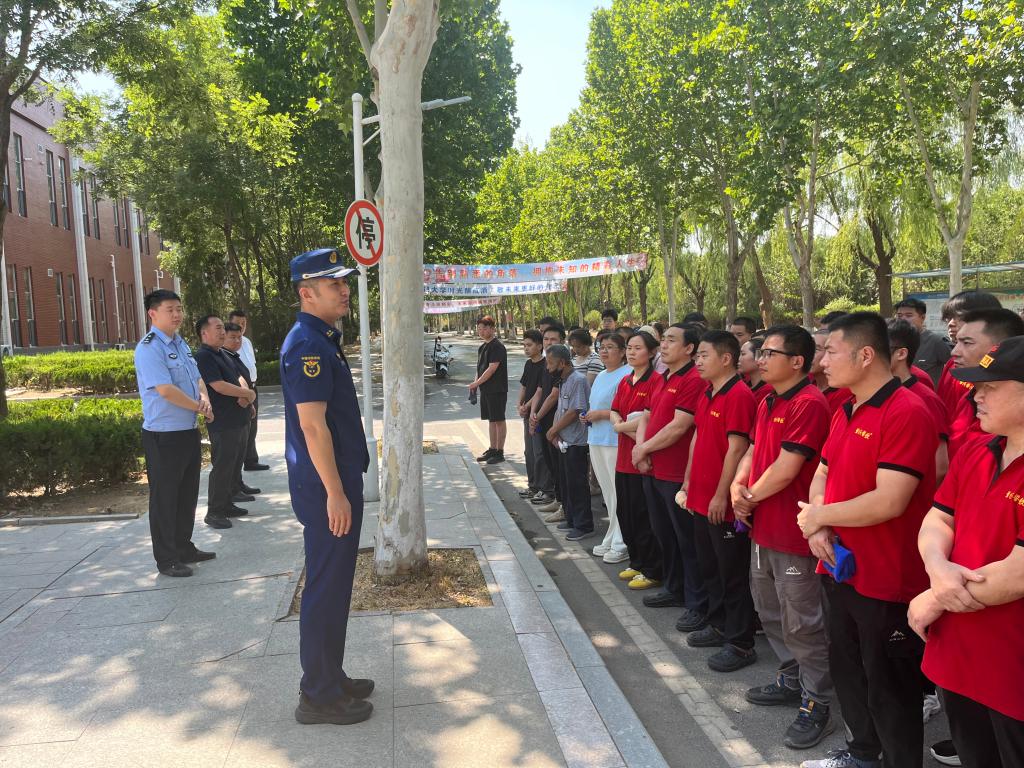 今年6月是第24个全国“安全生产月”,省政府安委会和济南市教育局下发了《2025年“安全生产月”活动实施方案》,活动主题是“人人讲安全、个个会应急——查找身边安全隐患”。为提高师生消防安全意识,加强校园安全教育,防止各类事故的发生,保障学校安全稳定,确保学校高质量发展。深刻吸取近期火灾事故教训,切实增强师生消防安全意识,全面提升学校火灾防控水平。6月17日下午,北校区综合办公室分别在餐厅东侧广场和六号学生公寓楼前组织开展了师生员工消防疏散逃生和灭火应急演练。北校区综合办特邀起步区消防救援大队、崔寨街道应急办和崔寨派出所领导莅临指导,北校区综合办公室副主任张中凯,学生工作处副处长王乾坤,以及餐厅、商业街、实验员、图书馆管理员、消防安全管理员、二级学院师生代表等共计500余人参加了本次演练。此次演练由北校区综合办公室主任高奎主持。