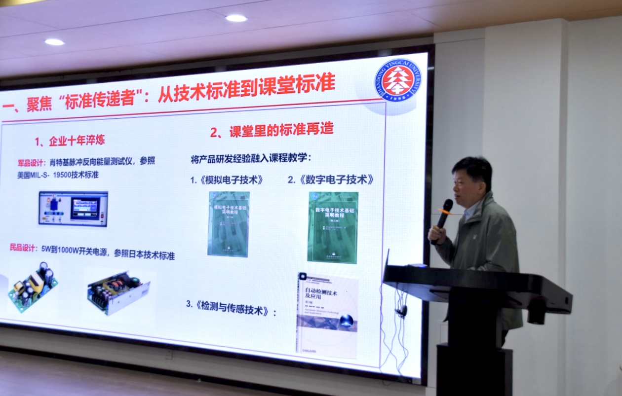 宣讲会上,孔令宇教授以“从工程师到教育者:三重身份融合路径”为主题,深入浅出地分享了他个人职业发展的心路历程与教育理念。他首先阐述了“标准的传递”,即如何将专业技术知识有效融入课堂教学,并进一步转化为科研成果,服务于社会需求。