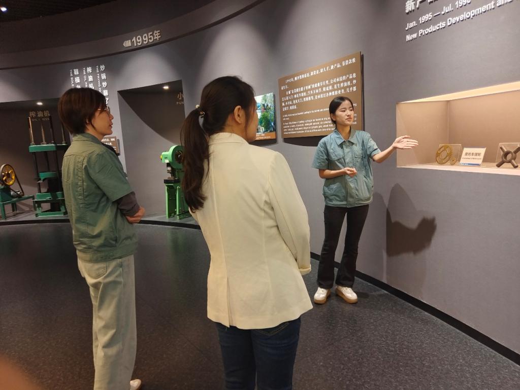 在豪迈集团相关负责人的陪同下,蒋丽丽副院长一行首先参观了集团发展历程展示区与核心厂房生产现场。通过实地考察,了解了豪迈集团的产业布局、核心生产工艺、技术研发方向及未来发展规划,直观感受到企业的现代化生产模式与人才需求导向,为后续校企合作落地筑牢实践基础。