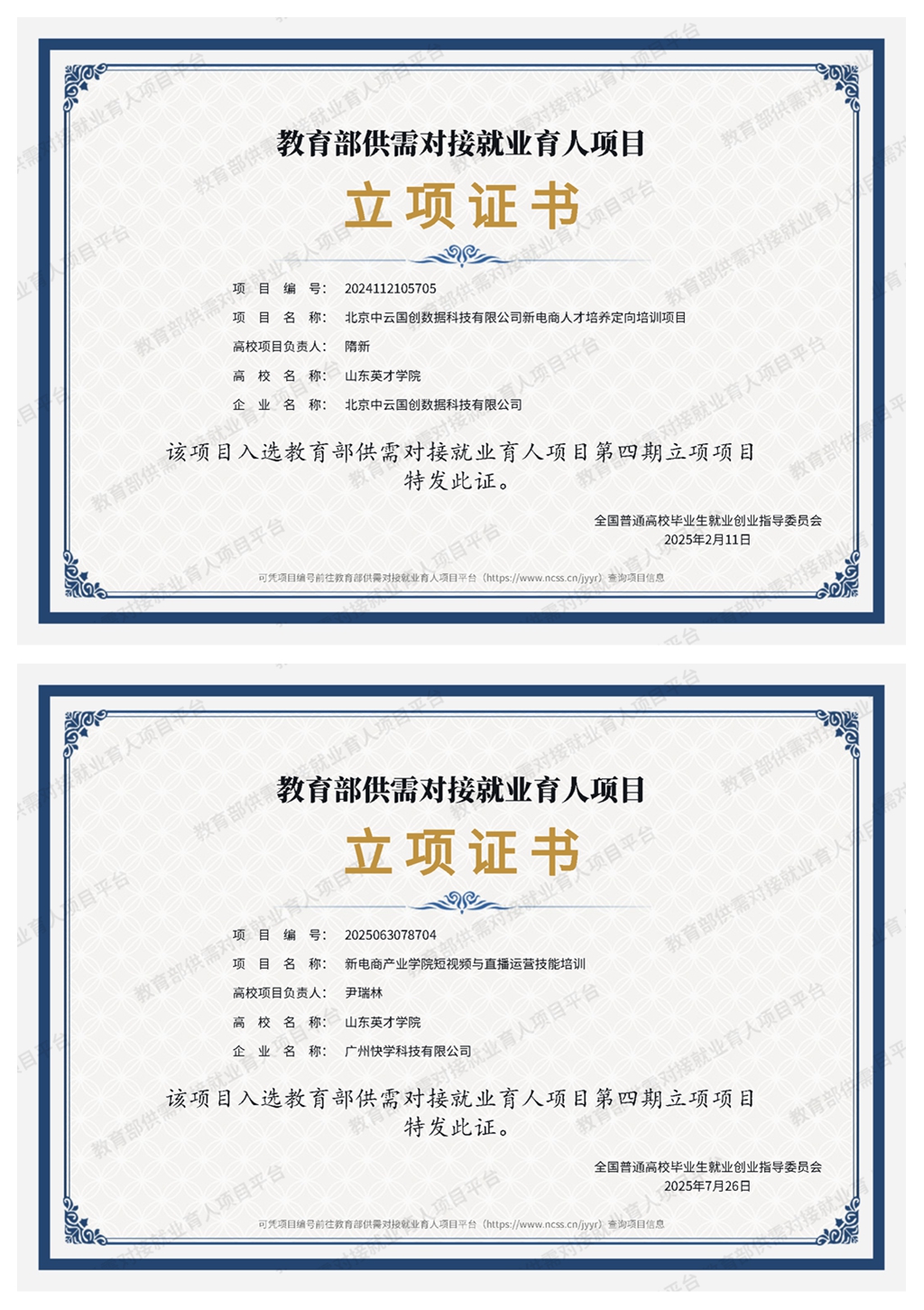 此次立项标志着山东英才学院在深化产教融合、精准对接新电商等新兴产业人才需求方面迈出了实质性步伐。两个项目分别携手北京中云国创数据科技有限公司、广州快学科技有限公司,聚焦新电商领域核心岗位,覆盖直播运营、短视频内容创作与营销、数字化运营、电商供应链管理等关键方向。通过“课程共建—项目共研—岗位共育”全链条协同模式,预计未来3年内将为区域输送600余名“上手快、懂运营、会数据”的高素质新电商人才。