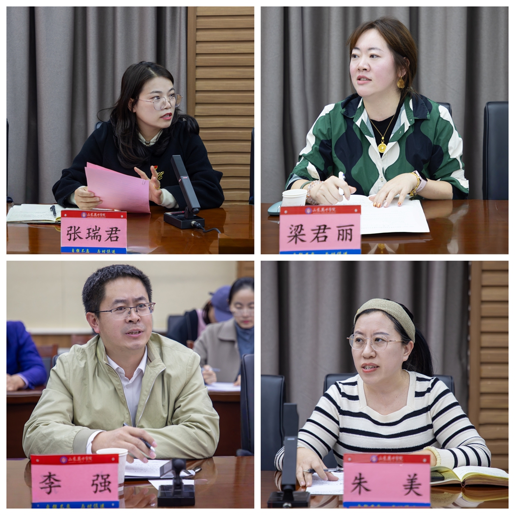 学校领导、学生工作处、教务处、科研处、通识教育学院结合工作实际,提出与创新创业工作融合建议。校长助理张瑞君表示要搭建起常态化的师生双向互动机制,主动公开导师库,设立学生“竞赛之星”等有效举措,营造浓厚的双创氛围;教务处重点推进青年教师培养,打造专创融合特色课程;科研处着力推动师生科研成果向双创项目转化;通识教育学院强化创新创业师资专项培育,列出优秀项目清单,备战2026年双创大赛。