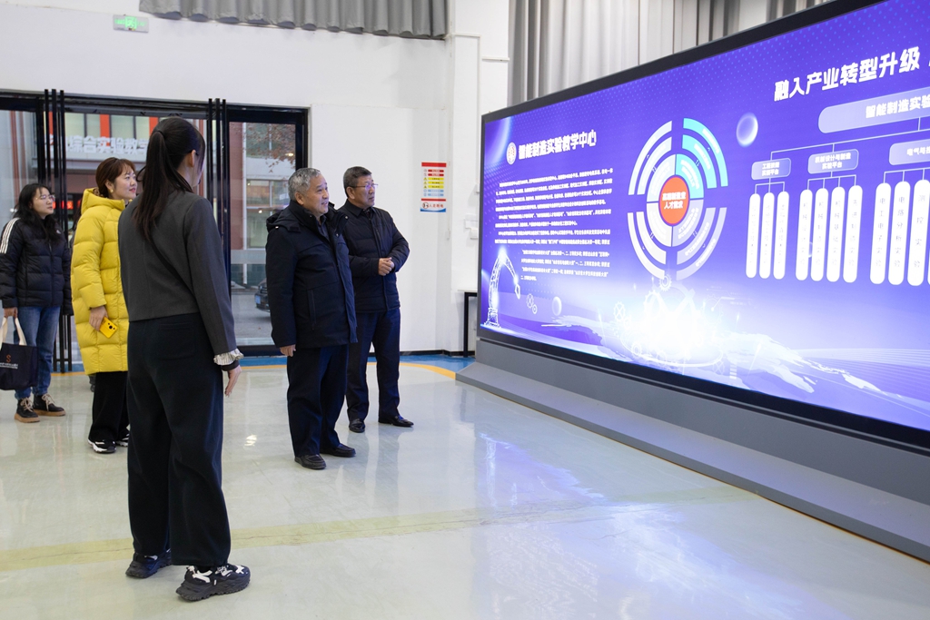 会后,秦方奇校长一行实地参观了学校信息技术实验教学中心、智能新能源汽车实验教学中心等场所,详细了解了我校在智慧教学环境建设方面的整体规划、技术应用与实际成效,并就相关设施的教学融合路径与现场负责人进行了深入交流。