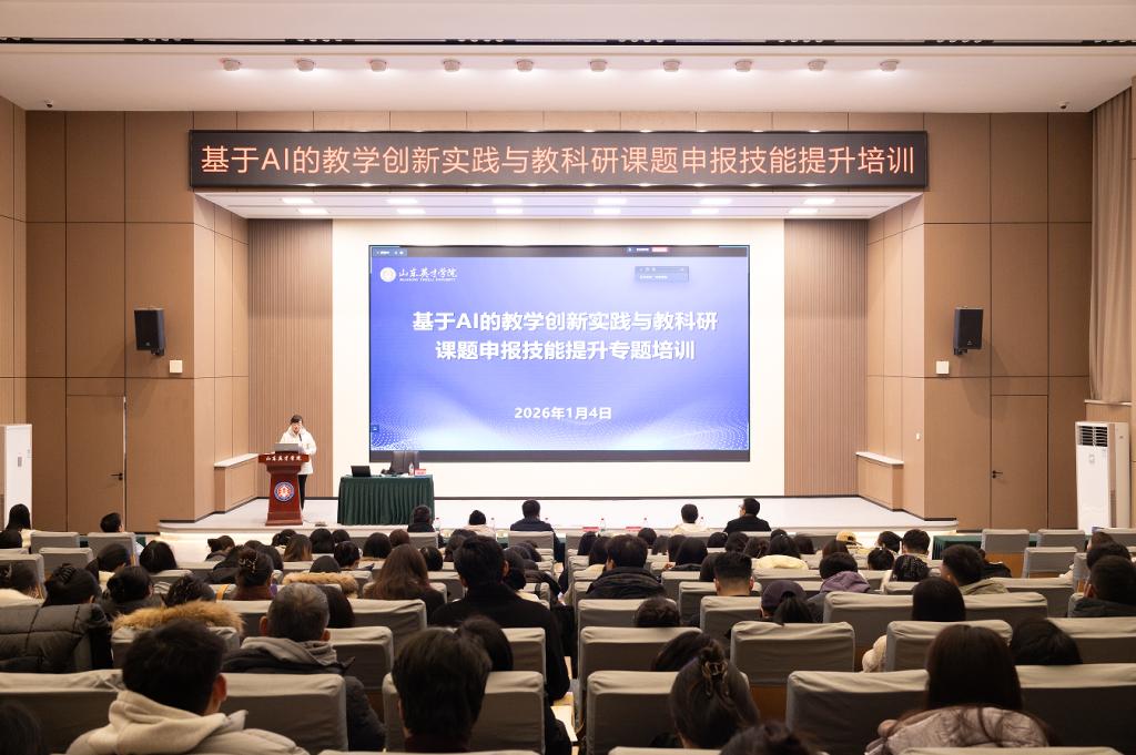 为贯彻落实国家教育数字化战略行动部署,加快推进人工智能技术与教学科研深度融合,全面提升我校教师队伍数字素养与创新能力,1月4日,学校在学术报告厅设立主会场并同步开通线上直播,举行“基于AI的教学创新实践与教科研课题申报技能提升”专题培训。学校党委副书记、执行校长王晓娜出席活动并致辞,各学院院长、副院长及青年教师等400余人参加活动。活动由人力资源处(教师发展中心)副处长于晓艳主持。
