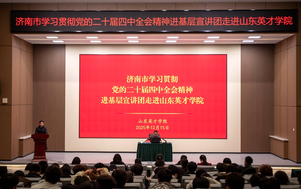 为深入学习贯彻党的二十届四中全会精神,引导广大师生准确把握“十五五”时期国家发展蓝图与战略部署,切实把思想和行动统一到党中央决策部署上来,山东英才学院党委高度重视、周密安排,自2025年11月起,按照“分层分类、精准滴灌、全域覆盖”原则,面向党员干部和师生开展系列宣讲活动。累计组织集中宣讲5场、分类宣讲十余场,覆盖师生三千余人次,在全校迅速掀起学习热潮,有力推动全会精神进校园、进课堂、进师生头脑。