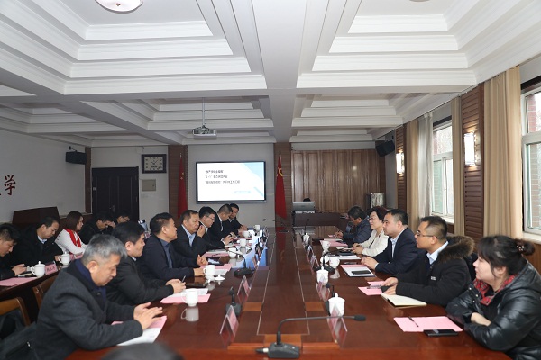 12月25日,济南大学原党委书记程新,山东省河南商会会长于吉涛、山东江苏企业商会会长高飞等“6+1”共同体成员一行来我校参观访问。我校常务副校长刘翠兰、常务副校长陈斌、副校长崔奎勇及相关部门负责人陪同参观。双方在学校第一会议举行座谈,座谈会由学校常务副校长陈斌主持。