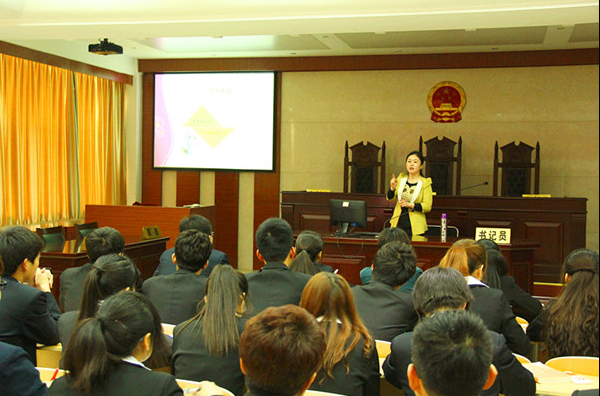 为了增强文法学院法律服务中心文明接待礼仪,便于我院法律服务中心的对外接待工作更加完善、得体。2014年4月15日,文法学院邀请了我校贾丹丹老师在北校实训楼模拟法庭对同学进行了“商务接待礼仪”专场培训。