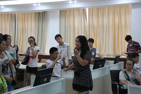 专业认知教育还包括参观我院实训中心。上午10点我院组织同学们对实训楼C楼的实训教学中心进行参观。同学们在辅导员老师的带领下整齐有序的进入实训教学中心,分别对大学生创新实验室、创业模拟实验室、财富模拟实训室等各个实训室进行了参观。实训中心邵秀东、于仕巧老师进行讲解,同学们听讲认真。通过对实训中心的参观,使同学们对学院环境、教学条件、专业技能知识有了更深的了解和认识。