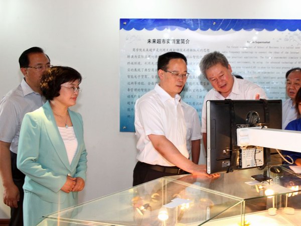 在现代物流实训中心,他在刘庆林院长的陪同下饶有兴致地参观了物流文化博物馆、未来超市实训室、自动化主体仓库、物联网实验室等地。当了解到现代物流实训中心是中国优秀物流人才培训基地、中国物流教学十大满意品牌、全国物联网技术应用专业人才联合培养基地、山东省八大物流人才培养基地时,他频频点头称赞。看到同学们正在上课,孙副省长亲切地和物流高职一班的潘晓帅、徐融、刁文春三位同学攀谈起来,询问他们来自哪里,每个月的生活费是多少,在校的学习和生活情况。当看到刁文春同学写的字时,他称赞道:“现在电脑应用非常普通,你的字写的这么好,很难得。”在出口处,他高兴地与正在上课的老师们合影留念,并语重心长地说:“教师是高尚的事业、责任重大,希望各位年轻的教师们,塌下心来,用我们的爱心、知识、技能和智慧引导学生成长成才,用激情点燃他们的梦想,让他们享有人生出彩的机会”。