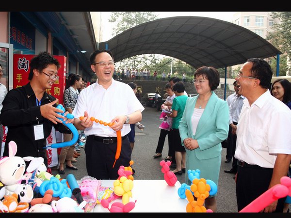 在学前教育实训中心,他听完学前教育陈文华院长介绍完全语言教育理念后,他表示:“儿童的语言就是全面的,这个理念非常有新意,非常有特色”。他还询问了是否有男同学选择学前教育专业,得到肯定的答复后,他表示:“要有更多的男孩子加入这个行业,这才有利于学前教育事业的发展”。