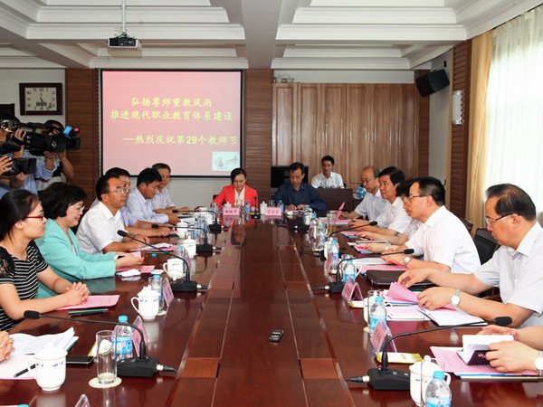 孙副省长指出,建立现代职业教育体系是推进“四化”同步发展的重要节点和有力支撑,要作为山东教育体制改革的一面旗帜亮出来,坚持不懈抓下去;要切实维护教师合法权益,千方百计帮助学校和教师办实事、做好事、解难事。他勉励全省广大教师要带头践行社会主义核心价值观,坚持立德树人、教书育人,为社会培养更多优秀人才。对于各高校提出的意见和建议,孙副省长表示将认真细致的研究,并逐步落实解决。(编辑:曲波)