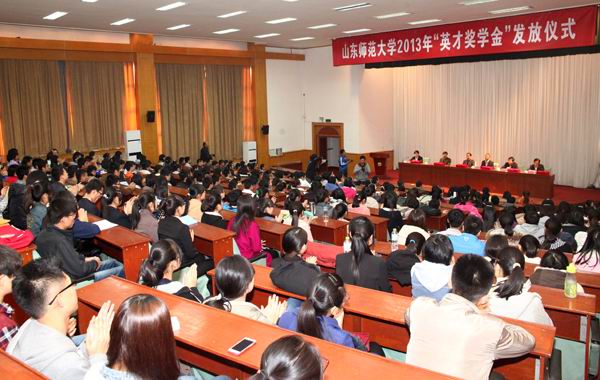 2010年山东师范大学60周年校庆之际,我院夏季亭院长作为山东师范大学的优秀校友为回报母校,出资60万元设立山东师范大学“英才奖学金”,分五年评选、颁发。11月6日,“英才奖学金”第四次颁发仪式在山东师范大学校本部教学三楼报告厅隆重举行。山东师范大学商志晓书记,赵彦修校长、向来生副书记、戚万学副校长、唐波副校长、王焕斌副校长,山东英才学院夏季亭院长、王兆良副院长以及两校有关部门负责同志、山东师范大学各学院学生工作负责同志、辅导员以及学生代表、历社学院主要负责同志参加了本次活动。