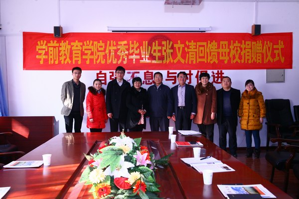 张文清女士08年学前教育学院毕业,经过几年努力创办了济南剑桥外国语培训学校,先后获得山东省、济南市创业之星等荣誉称号。她创办的企业不但使自己的事业越办越大,而且还解决并带动了我校大批毕业生的就业和创业。正像她自己所说,自己的发展离不开母校的培养与支持!今天在自己事业有了发展后首先想到的就是回报母校。