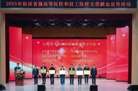活动中,宣读了关于表扬山东省高等院校和中职学校无偿献血、造血干细胞捐献表现突出集体及个人的通报和关于表扬2025年“学雷锋进校园,无偿献血志愿行”活动表现突出学校的通报,并向有关院校颁发了奖牌。