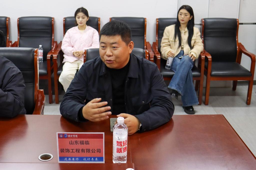 为深化校企交流合作,拓宽学生就业与实践渠道,10月28日,设计学院成功举办“企业进校园”活动,邀请山东福临装饰工程有限公司、济南金尚金品装饰有限公司、济南中盈东方万家装饰设计有限公司、礼非凡(济南)文化礼品有限公司、江苏楷旋动画有限公司等多家知名企业代表进校交流。