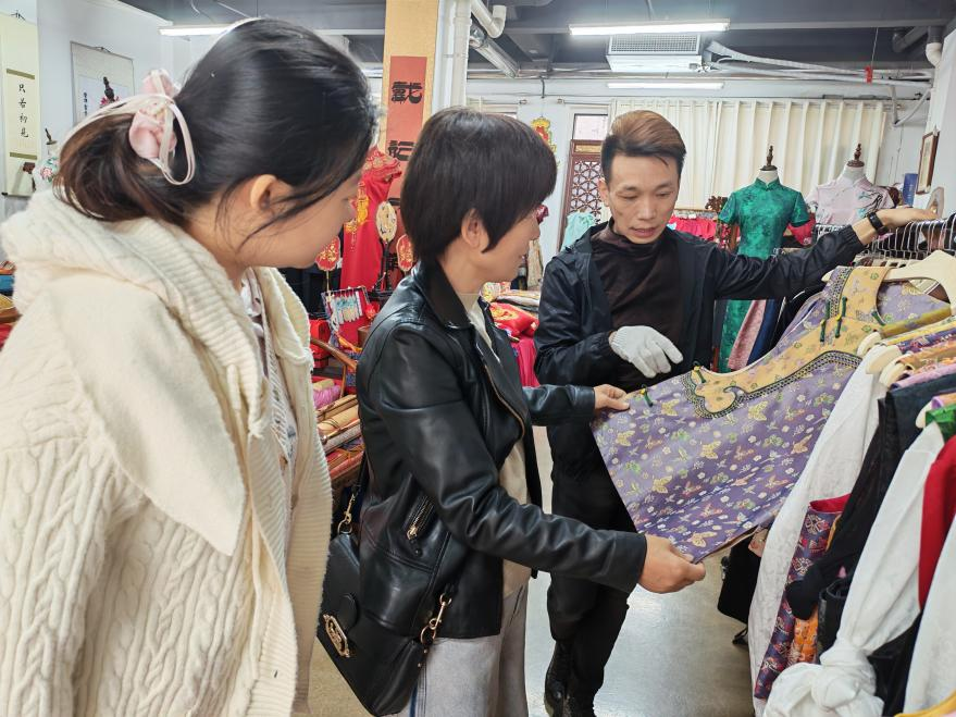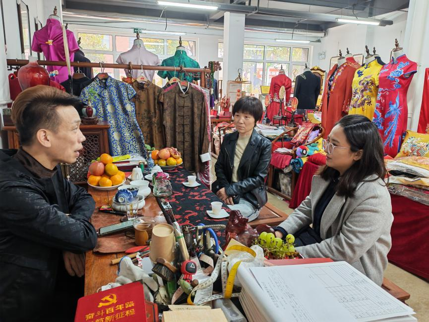 为推动传统非遗工艺与现代设计教育深度融合,探索协同育人新路径,11月9日,设计学院服装与服饰设计专业师生代表一行前往济南戴记鲁绣旗袍店,与非物质文化遗产传承人、品牌主理人戴军先生展开深度交流。双方围绕人才培养、设计创新、文化传承等核心议题达成高度共识,共同搭建非遗传承与设计实践的合作平台,开启校企携手发展的新篇章。