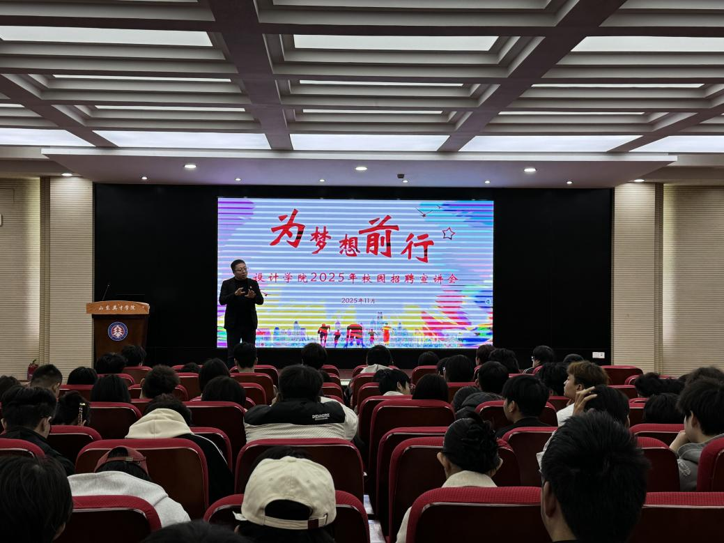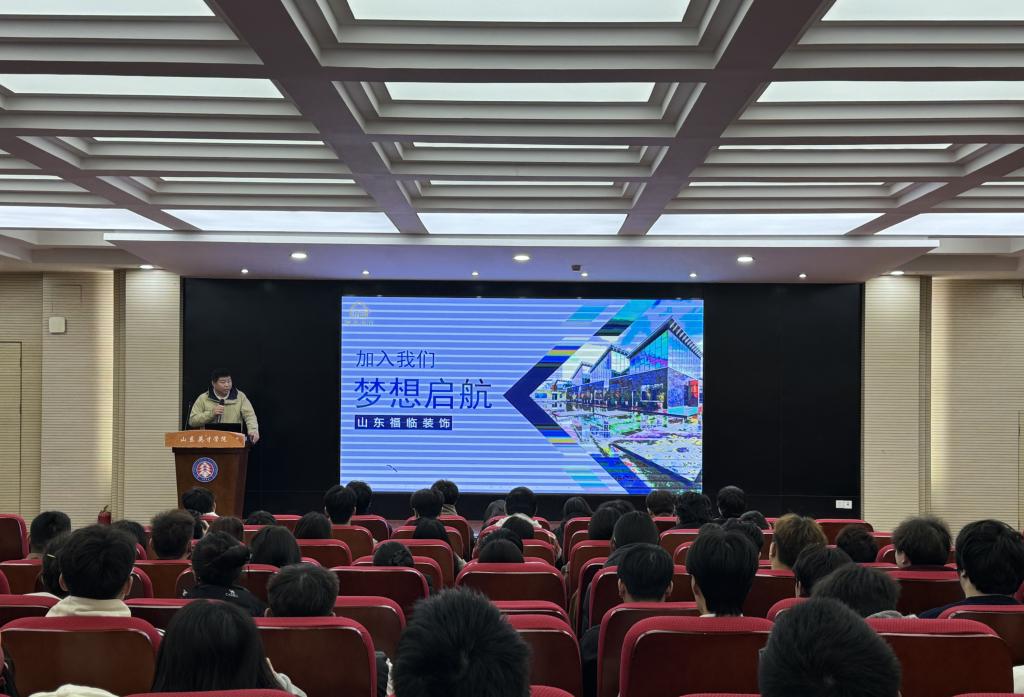 为切实搭建校企合作平台,助力2026届专科毕业班学生精准对接实习岗位,近日,设计学院成功举办装饰行业专场宣讲会。山东福临装饰工程有限公司、山东金尚金品装饰有限公司、山东绿港装饰工程有限公司、济南中盈东方万家装饰设计有限公司四家本土知名企业代表莅临现场,学院专职书记尚再斐、就业负责人、毕业班全体辅导员及200余名应届毕业生参会。