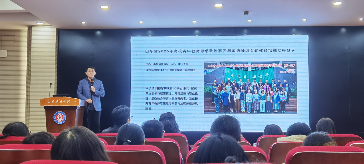 为深入贯彻落实新时代师德师风建设要求,提升教师思想政治素养与育人实践能力,12月2日,设计学院举办专题分享会,由夏兆冬老师面向全院教师分享参加山东省2025年高校青年教师思想政治素养与师德师风专题教育培训的所学所悟与实践思考。
