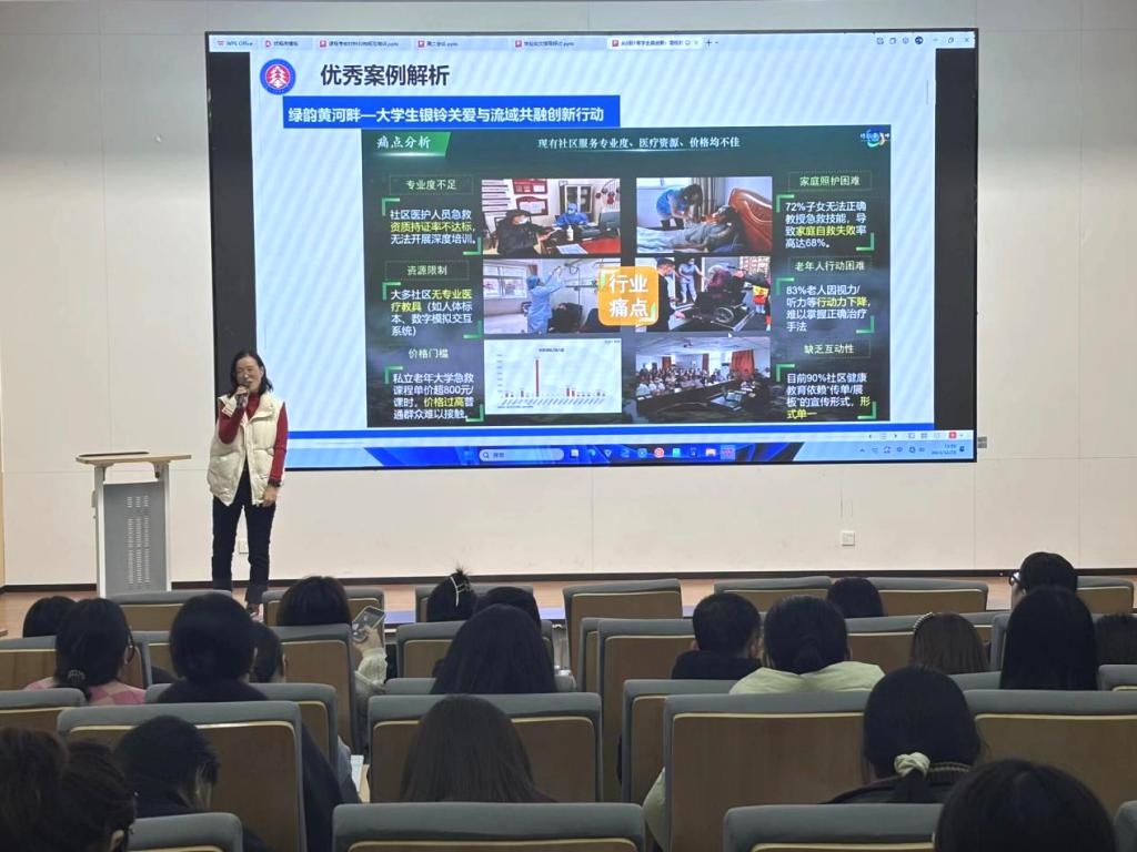 培训中,王老师围绕三大专业创新创业定位、项目选题方法、策划撰写、实施管控及学生创新思维与创业能力培养五大核心模块展开,结合《健康中国“2030”规划纲要》政策导向,解读大健康产业机遇,梳理护理学、康复治疗学、智慧健康养老服务与管理三大专业创新方向,并通过优秀案例解析、选题三步法、全流程实施指导等实用内容,为青年教师提供可落地的指导方案。参会教师纷纷表示,本次培训会内容详实、案例鲜活、指导性强,不仅厘清了创新创业指导的思路方法,更深化了对“专创融合”的理解认识。
