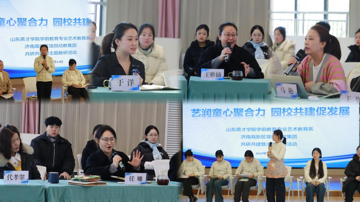 冬日暖阳洒满欢声笑语的园所,艺术的气息在童心世界里悄然流淌。为深入贯彻《3-6岁儿童学习与发展指南》艺术领域教育精神,推动高校艺术教育资源与幼儿园实践需求深度融合,2025年12月24日上午,山东英才学院学前教育学院艺术教育系师生走进济南市高新区珑悦幼儿园,共同开展以“艺润童心聚合力园校共建促发展”为主题的艺术共研共建活动。本次活动聚焦幼儿艺术教育实践创新、师资能力提升与资源共享,旨在搭建长效合作平台,赋能学前教育高质量发展。