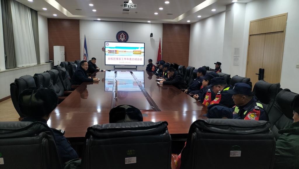 为表彰先进、凝聚力量,进一步做好校园安全稳定工作,12月31日,北校区综合办公室在图书馆楼211会议室组织召开2025年度安保工作总结暨寒假工作部署会议。会议系统回顾了年度安保工作,并对寒假及新一年的重点工作进行安排。北校区综合办公室主任高奎主持会议,安保干部及全体保安人员参加会议。