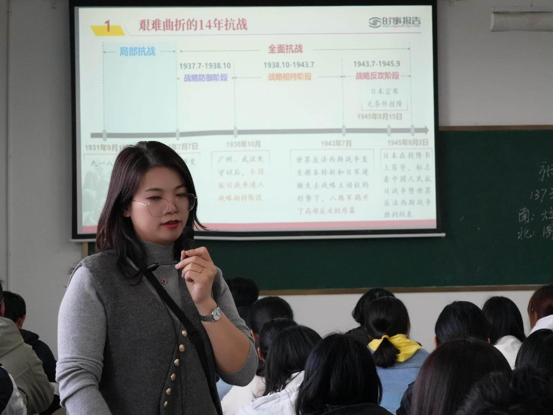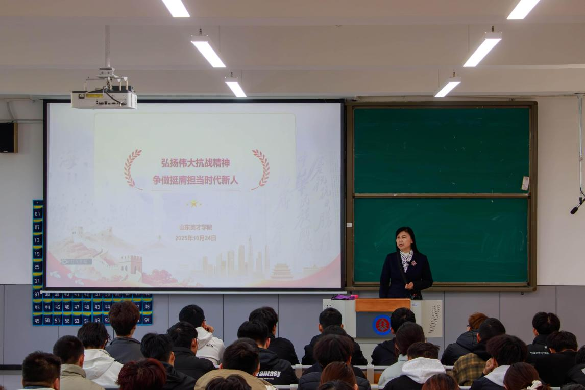 党委副书记、工会主席孙玉香以纪念抗战胜利80周年为契机,带领同学们回顾救亡图存、烽火连天的岁月,引导大家从中汲取民族从苦难走向辉煌的磅礴力量,启发学生思考在民族复兴的征程上,新一代青年该如何担当作为。这是一堂厚植家国情怀、凝聚奋进力量的“思政必修课”。