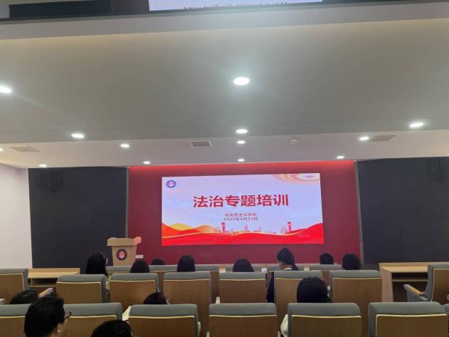为深入学习《中华人民共和国法治宣传教育法》,特别是其中关于青少年法治宣传教育的重要规定。2025年9月23日,马克思主义学院在红色讲堂组织法治专题培训活动,全体教师参加此次培训。