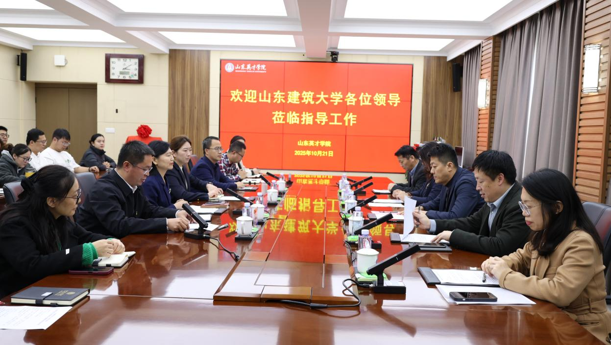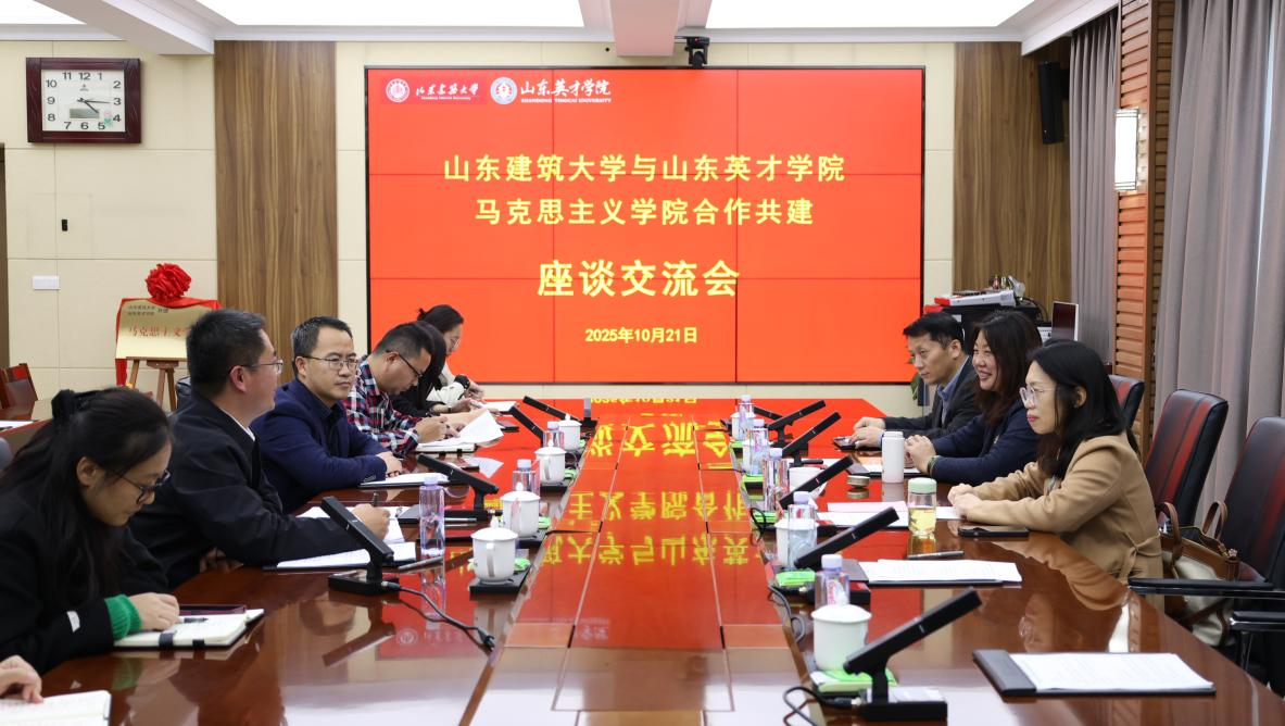 10月21日下午,山东建筑大学与山东英才学院共建马克思主义学院签约仪式暨建设经验交流会在我校办公楼第一会议室顺利举行。山东建筑大学党委委员、宣传部部长李展,马克思主义学院党委书记赵林胜,院长巩克菊,副院长王慧、汪旭;我校党委副书记、工会主席孙玉香,党委委员、宣传部部长王坤丽,马克思主义学院院长李强,副院长武玉兴及教师代表共同出席活动。