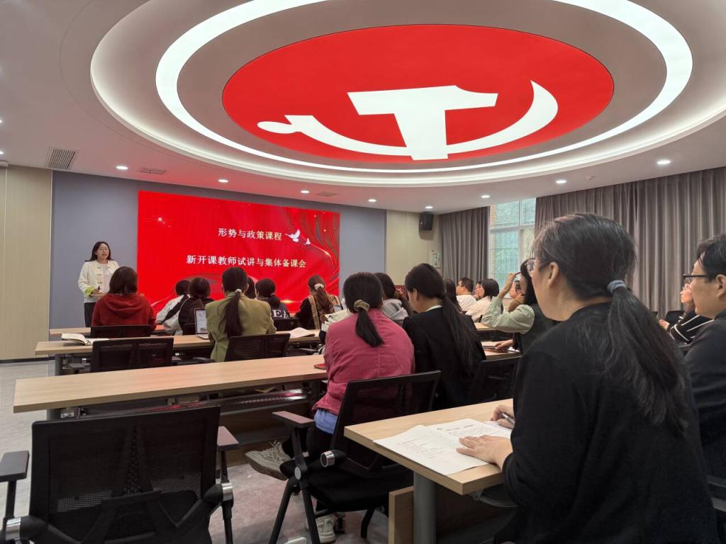 为进一步加强教学队伍建设,推动课堂教学质量稳步提升,2025年9月23日,形势与政策教研室在学院会议室组织开展新开课教师试讲与评议活动。此次活动由教研室主任杨洋主持,全体教师全程参与。