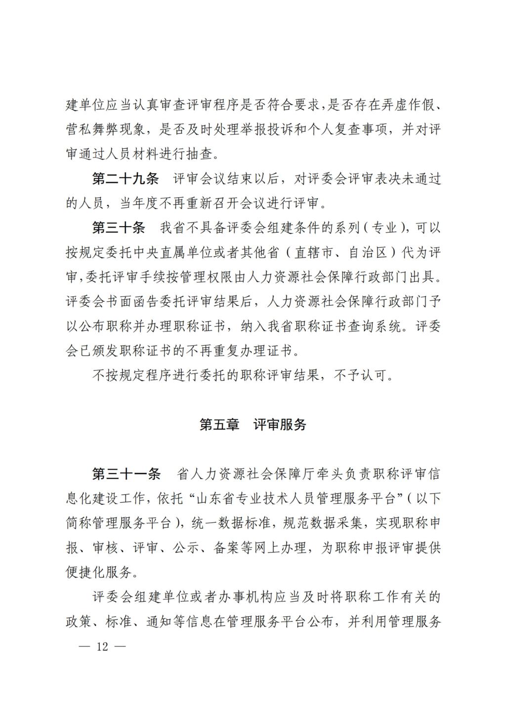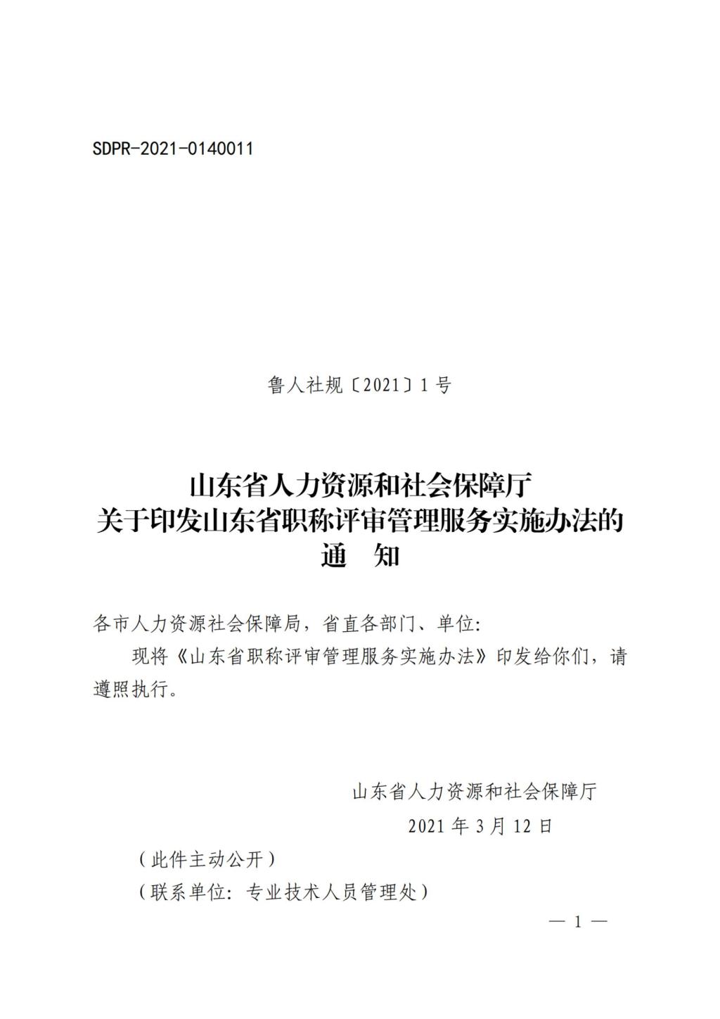 山东省人力资源和社会保障厅关于印发山东省职称评审管理服务实施办法的通知