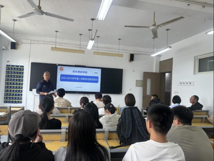 为全面规范期末考试工作流程,提升考试命题科学性和阅卷规范性,确保考试公平公正,音乐舞蹈学院体育教研室于2025年5月6日召开2024-2025学年第2学期期末考务工作专题会议。会议由教研室主任宋琦主持,音乐舞蹈学院体育教研室全体专任教师参会,重点围绕试卷命题规范、教师阅卷细则及考务培训三大核心议题展开部署。