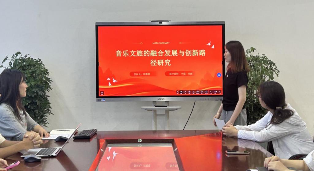 首先进行汇报的是大创训练项目“音乐文旅的融合发展与创新路径研究”。项目负责人详细阐述了目前项目的推进情况,包括研究进展、已取得的阶段性成果以及遇到的问题和困难。随后,针对前期专家提出的意见和建议,项目组进行了深入分析和讨论,并制定了详细的修改计划,力求进一步完善项目研究,提升研究质量。