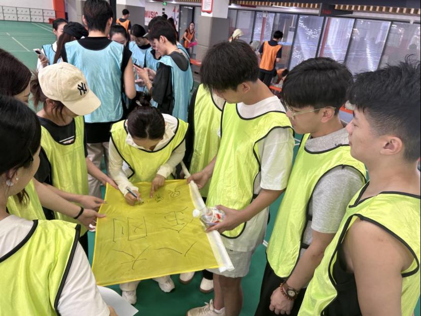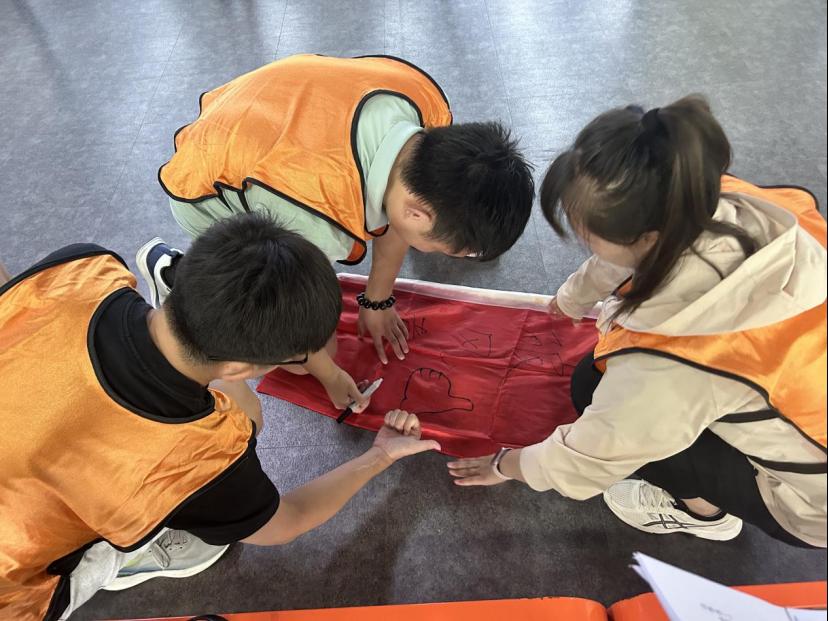 本次素质拓展分为“校内素拓团建”与“校园定向越野”两大板块,涵盖十大特色项目,将趣味性与团队协作深度融合。“旌旗飞扬”“乘风启航”“鼓舞信心”等项目中,老师们相互配合、彼此鼓劲,在肢体协作中快速拉近距离;“头脑风暴”“快问快答”“驿站传书”则以智力比拼激发思维活力,考验团队沟通效率;“穿越A4”“六人四脚”“定点投篮”等项目充满竞技乐趣,大家在欢笑与挑战中释放压力,展现出蓬勃朝气;最后,全体成员在“国旗下宣言”环节庄严宣誓,凝聚起投身教育事业的坚定信念。