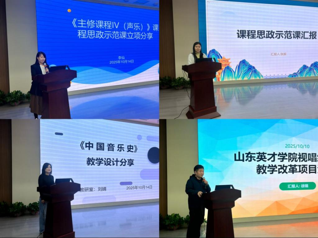 本次分享会,四位教师结合课程特色,从课程思政元素挖掘、教学目标重构、课堂活动设计、评价体系优化等方面,分享了示范课程建设的实践路径与典型案例:李仙老师以《主修课程IV(声乐)》为例,阐述如何将课程思政融入到作品演唱;张振老师依托《曲式分析》课程思政示范课案例展示融入思政元素、传递文化自信的实施路径;刘婧老师围绕《中国音乐史》中“京剧”章节的教学设计,通过知识点讲解培养学生民族文化自信意识;徐瑞老师从教学课堂改革方面将《视唱练耳》从基础训练转变为服务音乐表达与演奏实践的实用技能,以游戏化、情景化设计打破传统枯燥模式,让学生在快乐中提升音乐感知力。