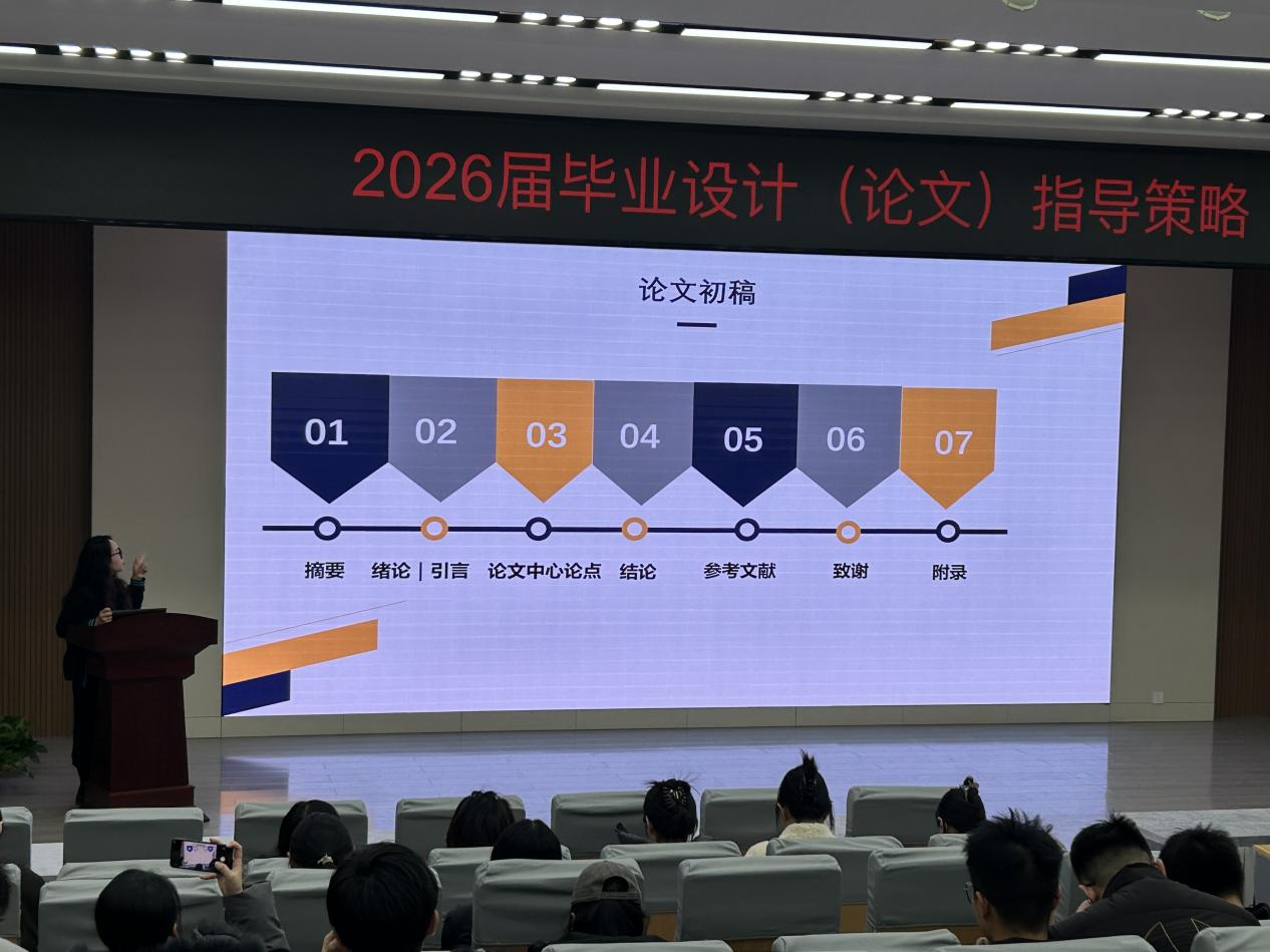 为切实提升2026届毕业设计(论文)质量,明确指导教师工作方向与核心要点,确保毕业设计(论文)指导工作科学有序开展,12月9日,音乐舞蹈学院在知行楼报告厅隆重召开2026届毕业设计(论文)指导策略专题会议。2026届全体毕业论文指导老师悉数参会,会议由陈梦姣老师主讲。