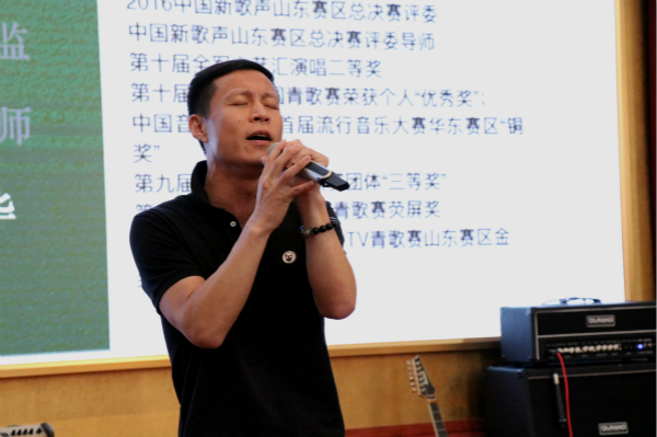 成立仪式结束后,现代音乐舞蹈学院的教师团带来了一场精彩演出,向大家展示了他们的风采。吴可畏院长为大家演奏了一曲爵士电钢琴独奏《友谊地久天长》,王学华老师携其高徒刘大乾、李晓叶、王子寒分别为大家演唱了歌曲《眼色》、《悟空》、《给我一个理由忘记》和《慢慢》,我校现代音乐舞蹈学院专职舞蹈教师刘小好率领其舞团向大家展示了日本手舞、民国百老汇舞蹈和欧美爵士舞的独特魅力,山东吉他协会罗会长带领山东艺术学院吉他研究生王永磊和唱作少年陈川齐分别带来吉他演奏和吉他弹唱表演,另外,曾多次获得中国鼓手大赛冠军的天才少年张驰,也为大家带来精彩的爵士鼓演奏。老师们的演出精彩绝伦,向全体新生展示了他们精湛的专业技能和丰富的舞台经验,给了同学们极大的视觉和听觉震撼。此外,我校特聘的明星导师团因工作关系未能来到现场,但都录制了VCR送来了祝福。