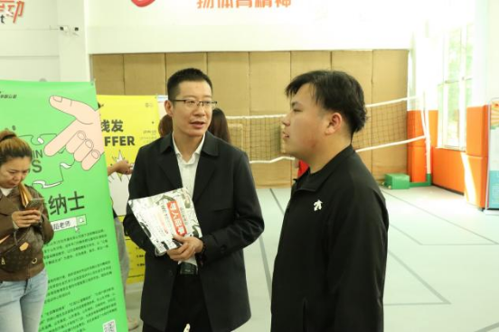 招聘会现场气氛热烈且井然有序。毕业生们手持简历穿梭于各个展位之间,积极与用人单位负责人展开交流。各用人单位代表耐心解答学生的疑问,并就工作环境、薪酬福利及具体岗位职责等细节进行了深入沟通。王晓娜校长还亲自与单位代表面对面交流,深入了解行业发展趋势及人才需求情况,同时听取了用人单位对我校人才培养和就业指导方面的意见与建议。其中,北京一家企业的HR总监表示:“音乐舞蹈学院的毕业生专业基础扎实、综合素质高,非常符合我们的用人标准,期待未来能够长期合作”。