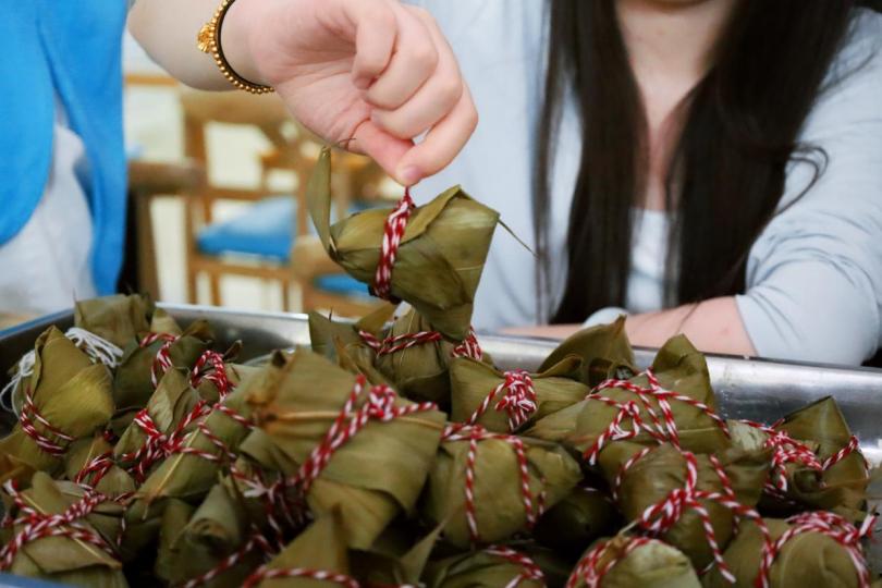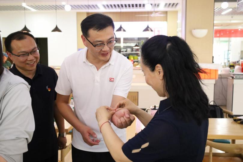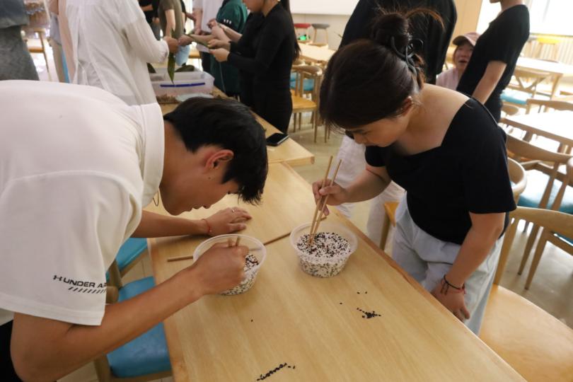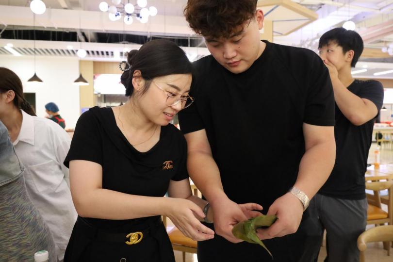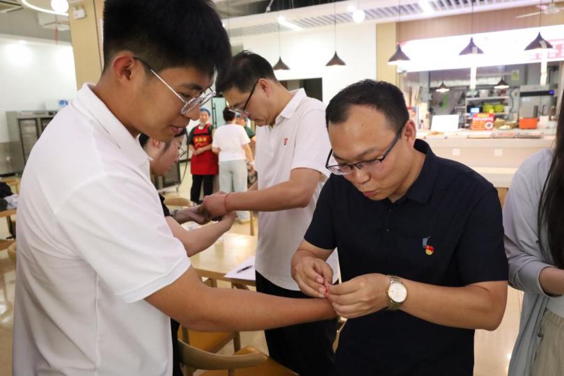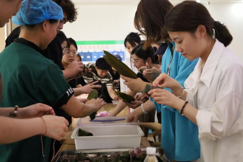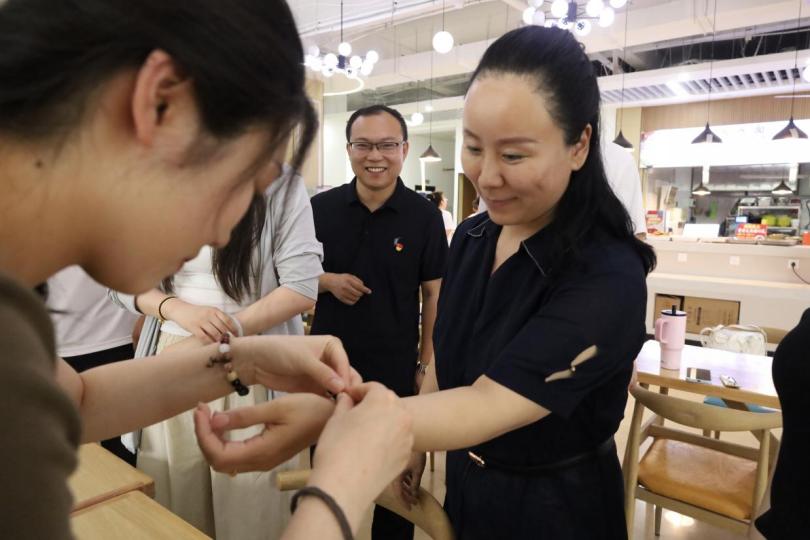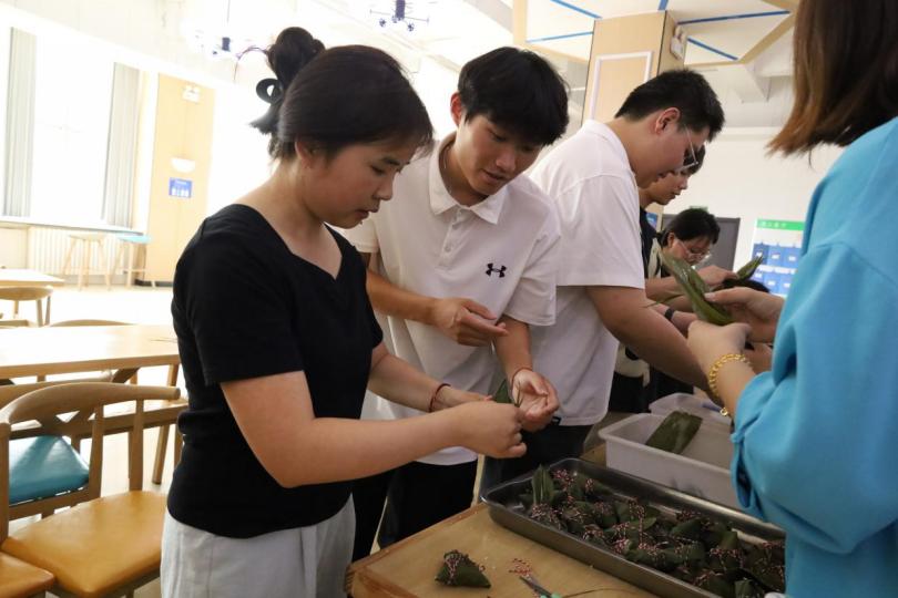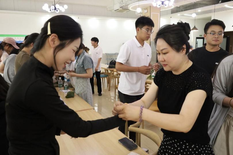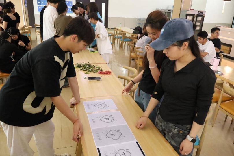 在完成粽子包制传统习俗后,师生们还为彼此系上五彩绳,在端午后的第一个雨天将五彩绳剪下来扔在雨中或河里,寓意扔走瘟疫和疾病。此项活动为大家提供了一个交流互动的平台,增强了学院内部的凝聚力和向心力。在共同庆祝佳节的同时,大家也感受到了家的温暖和节日的温馨。