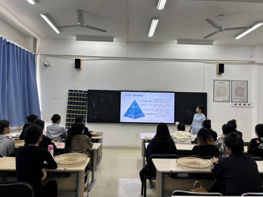讲座伊始,主讲人薛阳阳老师强调了大二阶段的重要性。大二既是学业深化期,也是实践与能力提升的黄金时期,更是为升学或就业做准备的关键节点。薛老师引用哈佛大学数据指出,有清晰长远目标规划的人,25年后大多成为行业领袖与社会精英,而目标模糊或无目标者往往在社会中下层徘徊,由此鼓励学生明确目标、做好规划。