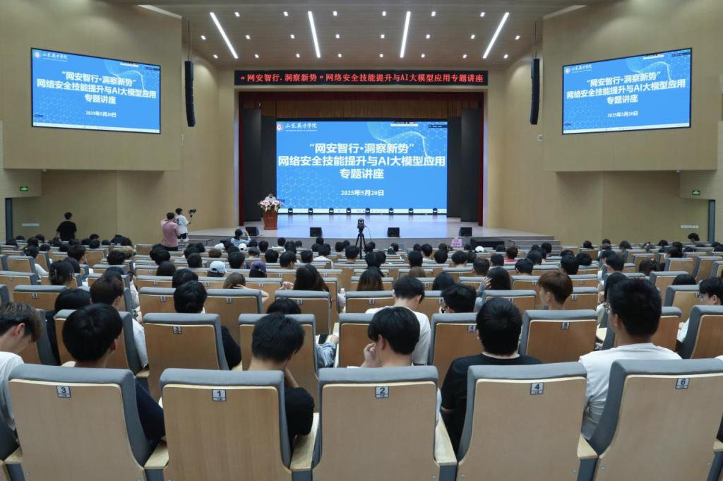 为强化师生网络安全意识,深化对人工智能及AI大模型的认知与理解,5月20日,“网安智行・洞察新势” 网络安全技能提升与AI大模型应用专题讲座,在山东英才学院南校区音乐厅和北校区设计学院报告厅同步举行。本次讲座由新华三集团资深工程师主讲,由信息技术与管理处处长朱居正主持,各单位(部门)师生代表共800余人参加。