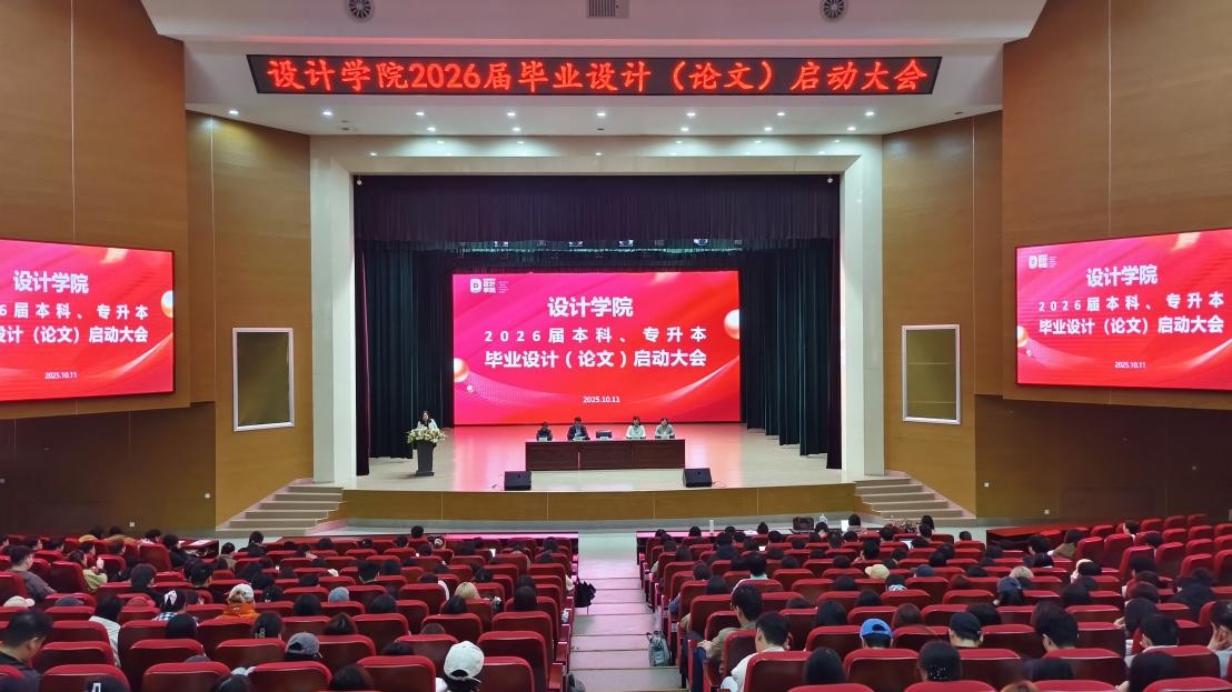 2025年10月11日,设计学院于学术报告厅举行2026届毕业设计(论文)工作启动大会,全面部署推进相关工作。设计学院院长郝莹、教学副院长尚宪福、各系部负责人、全体指导教师及2026届本科与专升本毕业生共400余人参会。