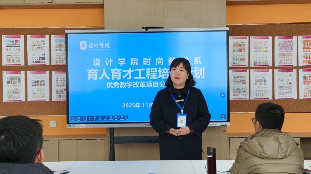为深化教学改革,推进课程思政建设,提升教师育人育才能力,设计学院督导组于2025年11月18日,设计学院教学楼107举办“育人育才”培训工程之优秀教学改革项目分享沙龙。时尚数媒系全体教师参与,学院督导组组长李俊峰及四位督导全程参会指导。