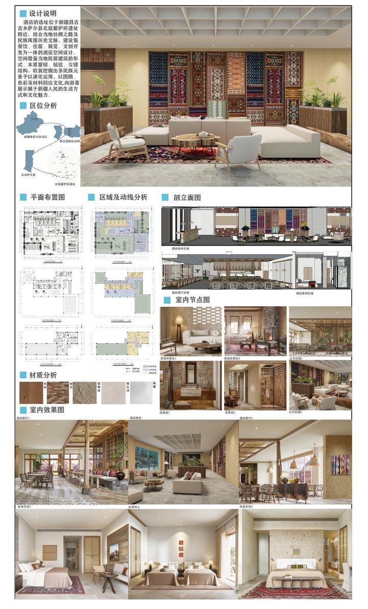 省级一等奖“寻忆西域——丝路印象酒店设计”获奖学生:廖思颖 指导教师:张倩