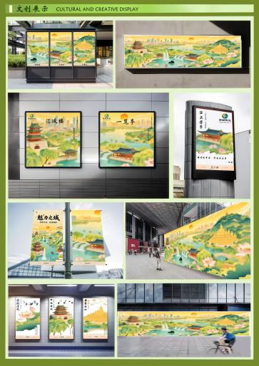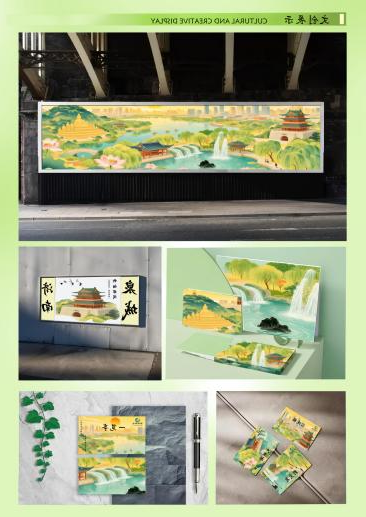 作品说明:本作品聚焦济南泉文化,提取汇波楼、大明湖、千佛山等标志性元素,利用泉锦鲤IP形象,经多形式演绎创作过程,为开发装饰画、抱枕、文具等各类文创周边莫基,借文创传承推广泉城文化。