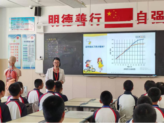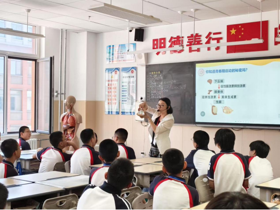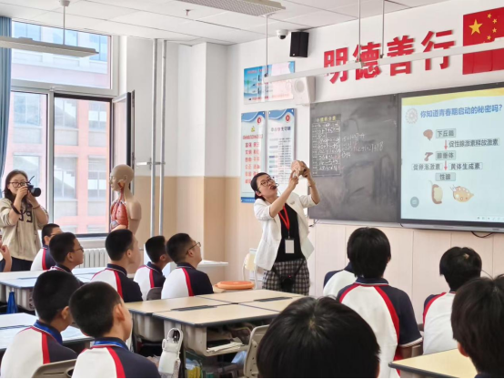活动伊始,生命与健康志愿服务团队教师徐莉老师利用精心制作的PPT,为学生们进行了一场生动的健康宣讲。活动当天,徐莉老师结合医学专业背景,通过生动形象的课件和通俗易懂的语言,系统讲解了青春期生理发育特点,认识青春期启动的奥秘,探索科学家精神,了解生理变化以及卫生保健预防等科学知识的分享。针对初中生常见的困惑,如情绪波动、人际交往等问题,徐老师结合案例分析,引导学生学会自我调适,建立积极心态。