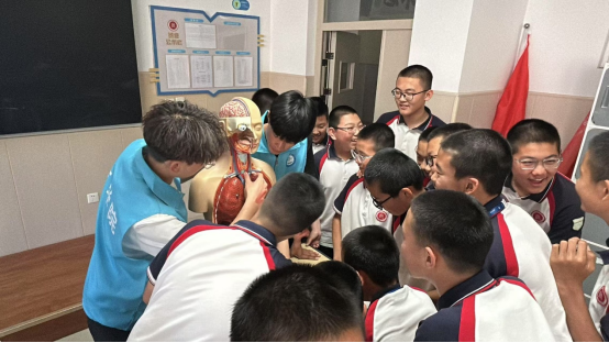 宣讲结束后,团队成员们迅速投入到知识问答环节。他们为学生们讲解人体的各个器官及其作用知识,一边操作一边耐心地向学生们讲解人体的相关知识,提醒学生们日常关注身体变化。