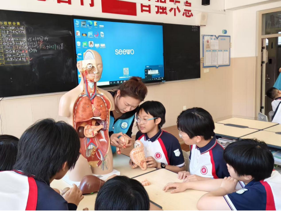 老师及志愿者们通过3D解剖模型,带领学生们探索身体的奥秘。这场活动不仅是知识的传递,更是一场双向奔赴的成长。
