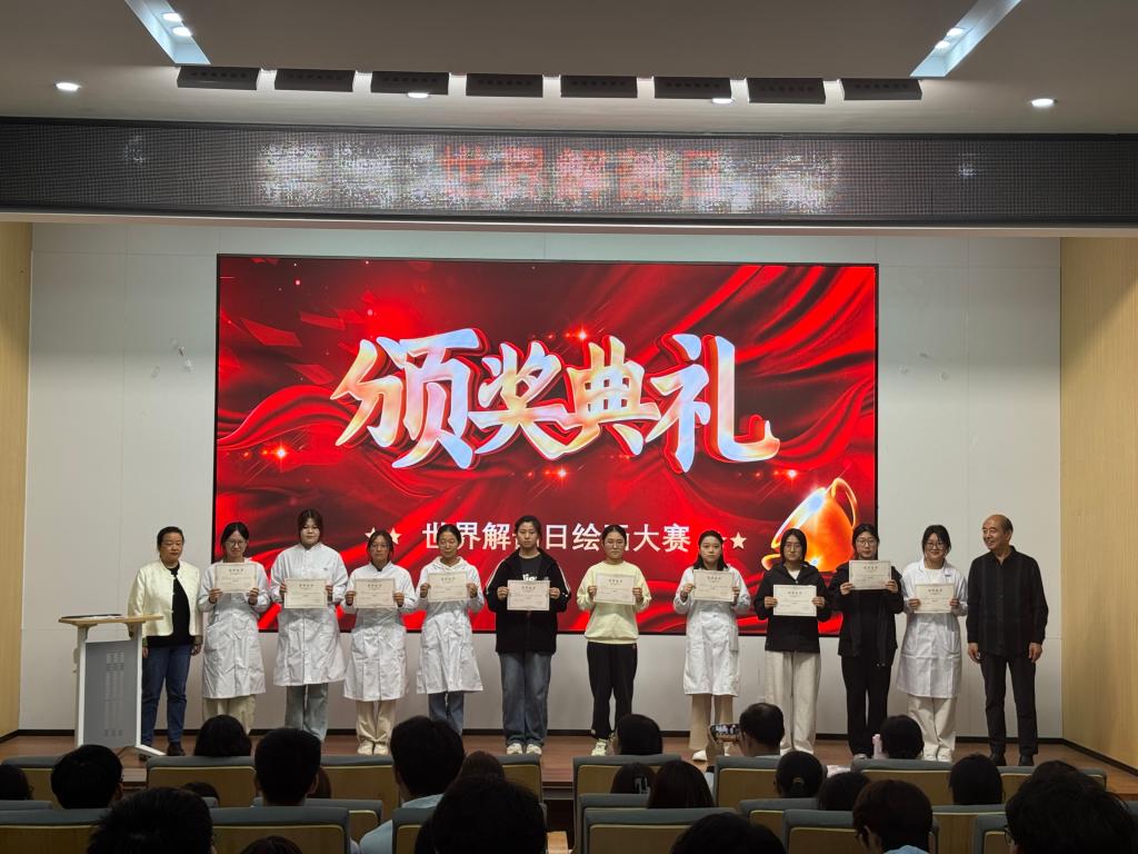 中心前期发起“解剖日”绘画征集,收到作品112幅,22幅入围现场投票。本科护理学2502班张宸《骨生花》以肋弓为花瓶、玫瑰代心脏,获一等奖。《人体解剖学》课程负责人徐莉老师:“冷骨生花,科学与诗意在心口相遇,向无语良师低首,敬畏与温柔同频共振。”王世芳院长颁奖词:“画笔是解剖刀的温柔倒影,科学与人文在此握手。”