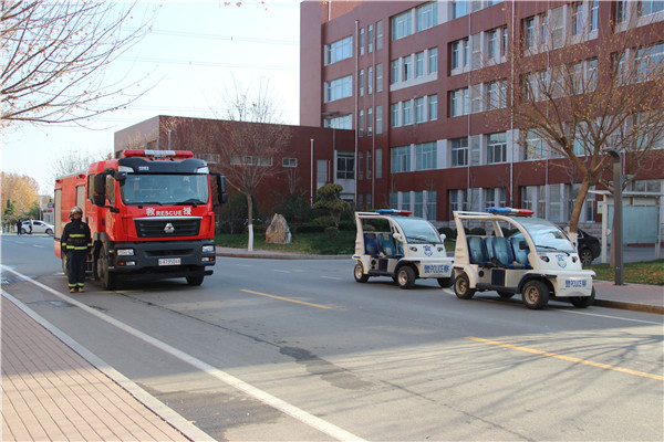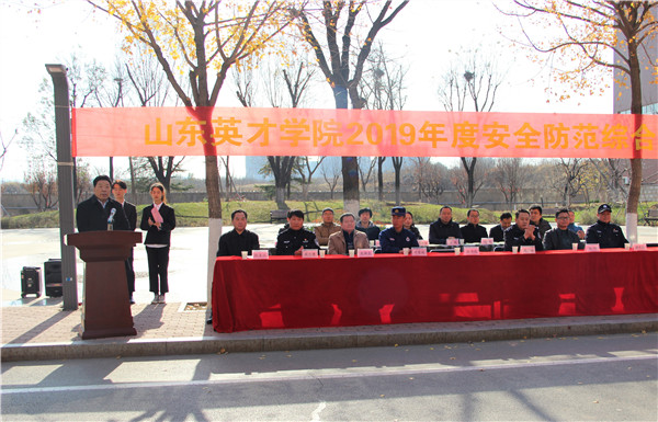 11月28日中午12时,随着学校领导一声号令,安全管理处会同高新公安机关、消防救援力量主办的“山东英才学院2019年度安全防范综合演练”,在学前教育学院教学楼前广场拉开帷幕。济南高新公安分局巨野河派出所梁文海教导员、杨中锋警官,济南市高新消防救援队大队孙村中队时登起队长率领队伍莅临组织指导,学校副校长张兴虎教授,学生工作部部长龙新良、学前教育学院常务副院长赵坤,各二级学院、高级技工学校党政领导现场观摩,学校安全管理处、应急救援大队、部分学院参演师生300余人参加了演练,安全管理处孙玉山处长主持致辞。