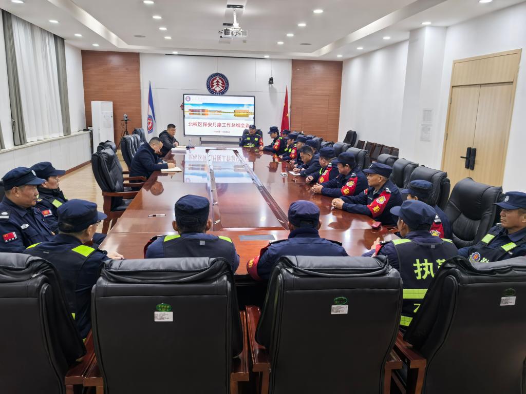为了进一步加强校园安全防范工作,消除安全隐患,提升安防能力,构建重点场所安全屏障,全面提高保安人员整体素质和“人防”建设水平。11月28日下午,北校区综合办公室在图书馆211会议室召开保安人员校园月度工作总结会议,安保干部及保安公司全体人员参加培训会。会议由北校区综合办公室高奎主任主持。